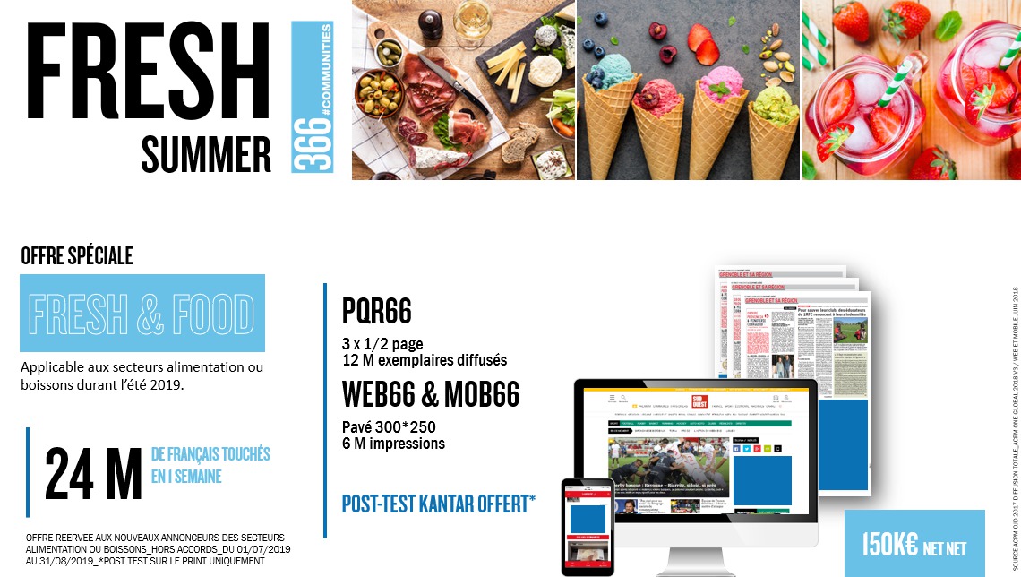 Fresh Summer propose aux annonceurs des secteurs alimentation et boisson un dispositif sur l’ensemble des marques de PQR permettant de toucher 24 millions de Français en une semaine.