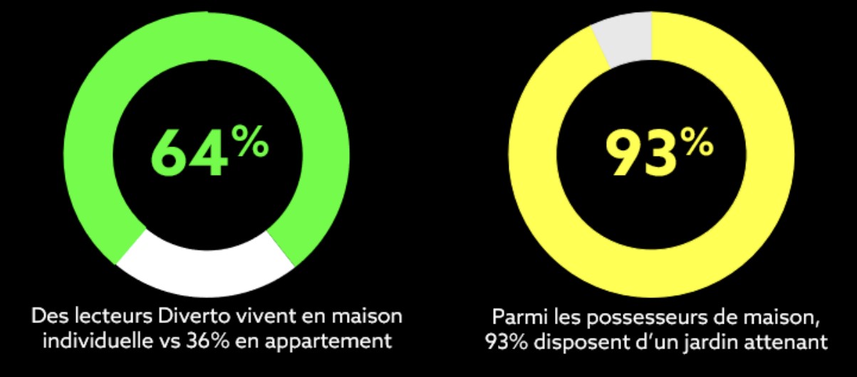 Au-delà de ces aspirations cohérentes avec Diverto, on note également une forte appétence pour les loisirs manuels. Les activités liées au domicile (bricolage, jardinage, …) sont notamment plébiscitées. Une raison principale explique ce tropisme : les lecteurs de Diverto sont plus souvent que la moyenne des habitants de résidences individuelles, souvent avec jardin.