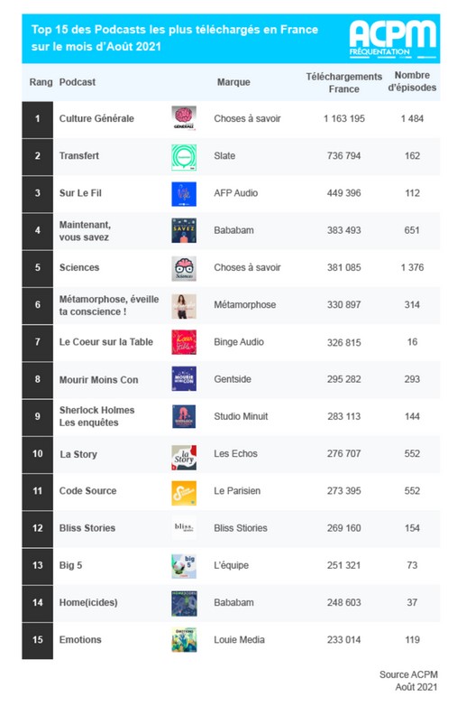ACPM : classement des podcasts pour le mois d’août