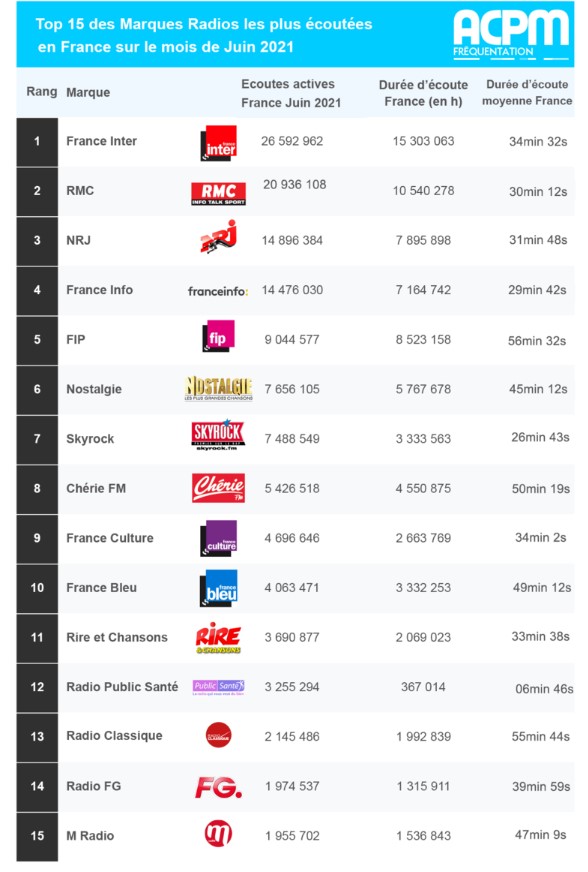 ACPM : classement des radios digitales pour le mois de juin