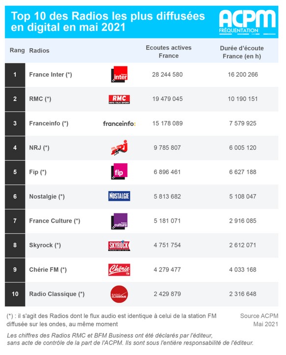 ACPM : classement des radios digitales pour le mois de mai