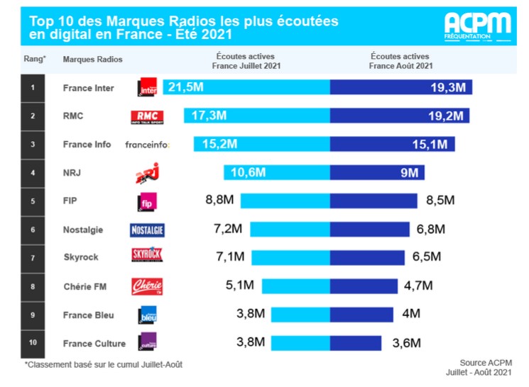 ACPM : classement des radios pour la période estivale (juillet – août)