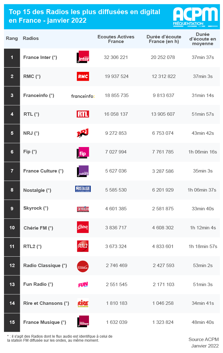 ACPM : classement des radios pour le mois de janvier