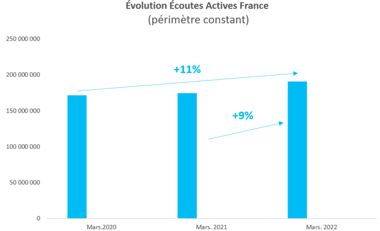 La diffusion des radios et Web radios progresse fortement au mois de mars pour atteindre 217 Millions de sessions d’écoutes actives. C’est une hausse de 9% en un an de la diffusion numérique des radios.