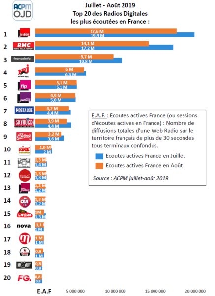 ACPM Classements des radios digitales – juillet/août 2019