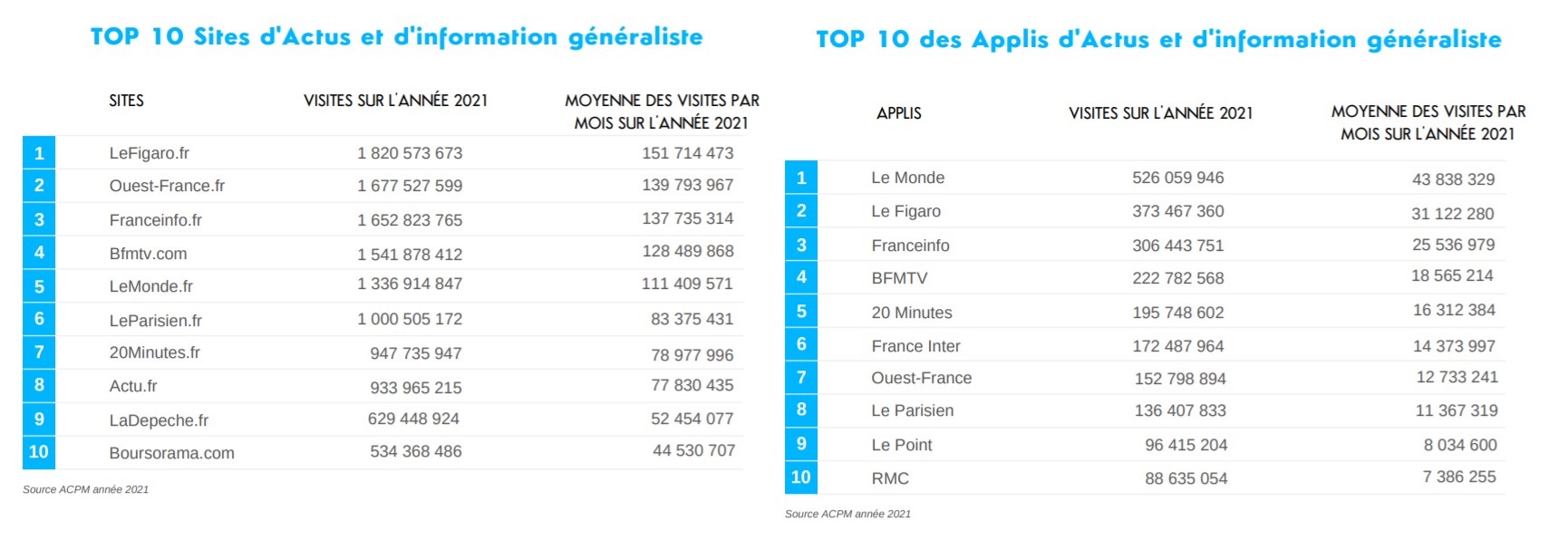Le pôle Fréquentation de l’ACPM, chargé du contrôle et de la certification de la fréquentation des sites et des applications, de la diffusion de la radio et des podcasts, vient de publier le bilan de l’année 2021.