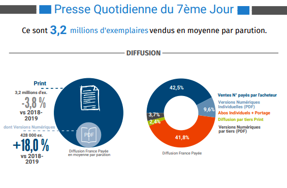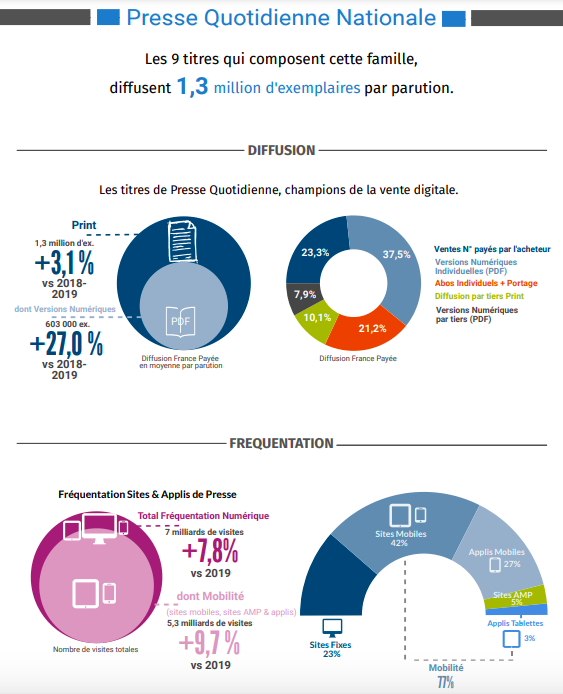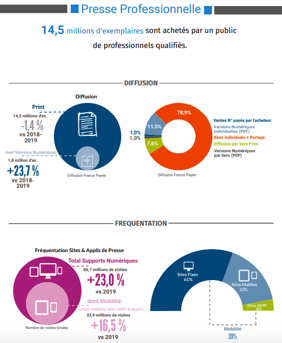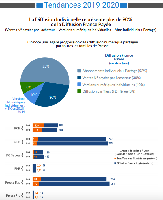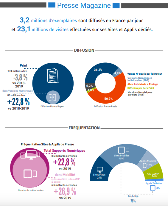 L’ACPM a publié ses derniers chiffres concernant la diffusion et la fréquentation de la Presse Française. La diffusion de la Presse Française est étudiée sur les 8 premiers mois de la période 2019-2020 quant à la fréquentation des Sites et Applis de Presse, elle est sur la période 2019-2020.