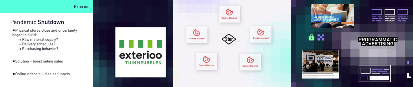 Dans cette optique, c’est vers une campagne programmatique vidéo que l’agence s’est tournée pour répondre à la demande de son client Exterioo, actif dans les meubles de jardin. Mais la tâche ne s’est pas révélée simple car le ‘core’ du groupe cible de la campagne surfait sur des sites NPO (Nederlandse Publiek Omroep – broadcasters néerlandais) qui n’autorisaient pas les cookies. En bref : initialement, il était question d’une ‘gateway technology of ad use’ implémentée dans le réseau « Ster » mais ce dernier bloquait les cookies third-party. Ce blocage a rendu le réseau ‘untargetable’ et ne convenait pas à la publicité programmatique.