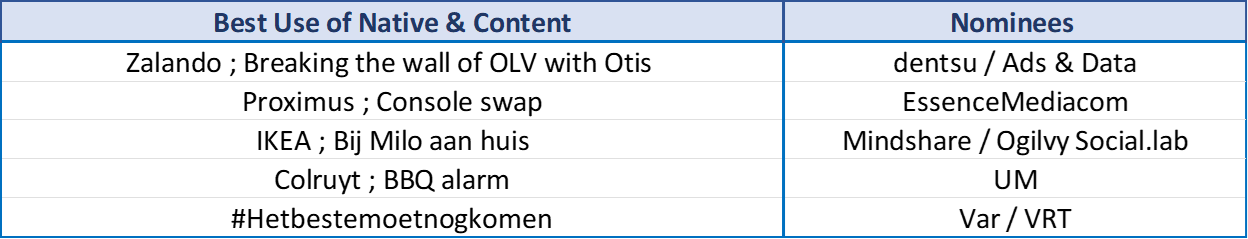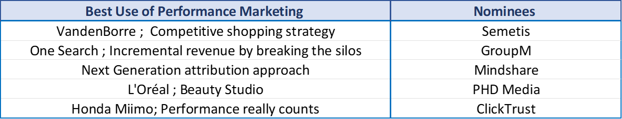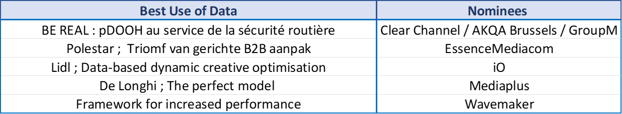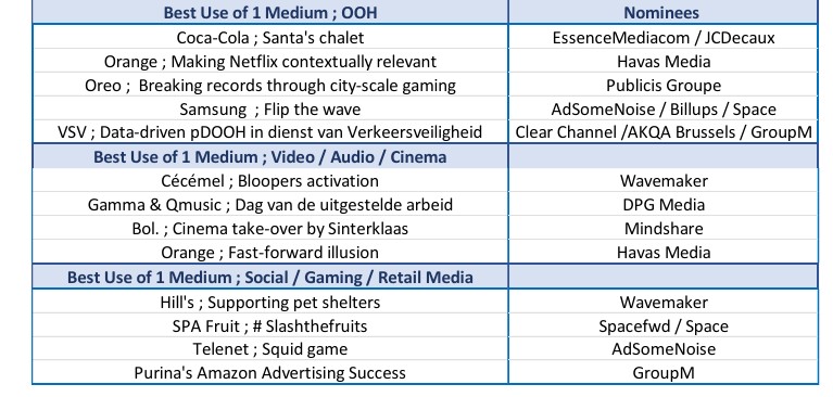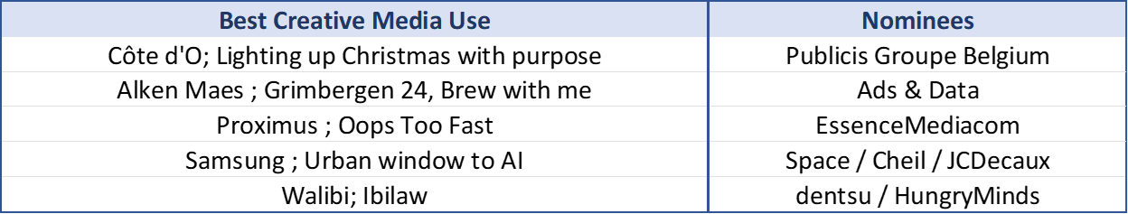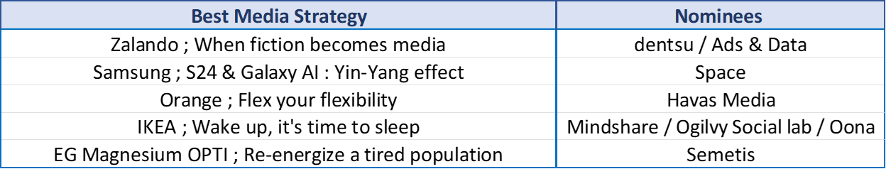 Dans la catégorie Media Agency of the Year ont été nominés: