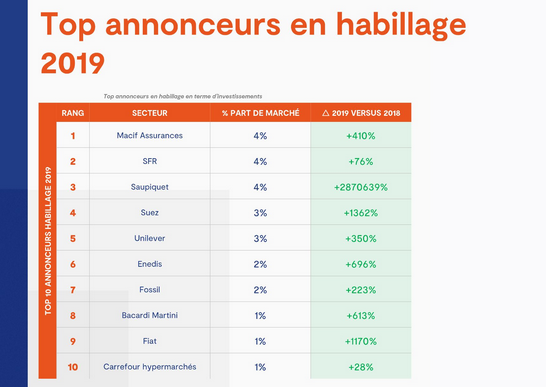 Top 10 des annonceurs en habillage 2019