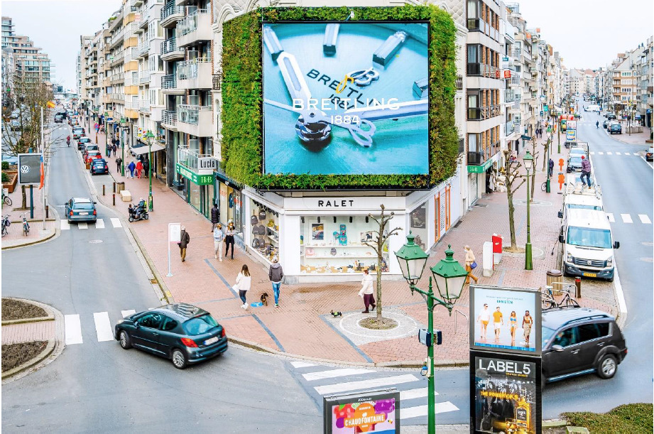 Cet écran numérique est entouré d’un jardin vertical de 100m² avec des plantes réduisant les émissions de dioxyde de carbone et est situé au cœur de Knokke, dans la rue commerçante Lippenslaan. Les murs de plantes vivantes aident la municipalité de Knokke à rendre le centre ville plus attrayant et ont un effet positif sur le bien-être des habitants et des visiteurs de la ville. Le jardin vertical s’inscrit dans l’ambition de durabilité de blowUP media Benelux et, avec ECHO®, le matériau 100 % recyclable des affiches géantes, constitue leur prochaine étape vers un avenir plus durable.