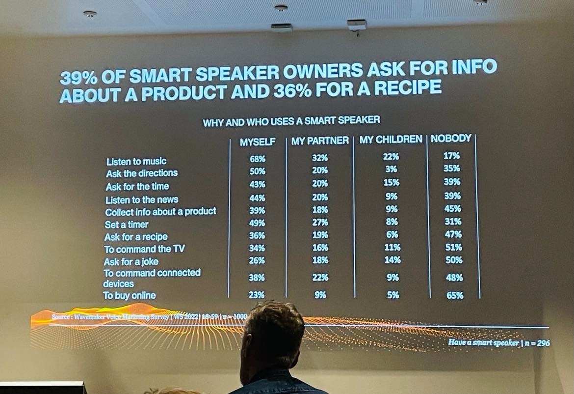 Les gens utilisent un smart speaker principalement pour écouter de la musique, mais aussi pour demander des informations sur un produit et même pour acheter en ligne.