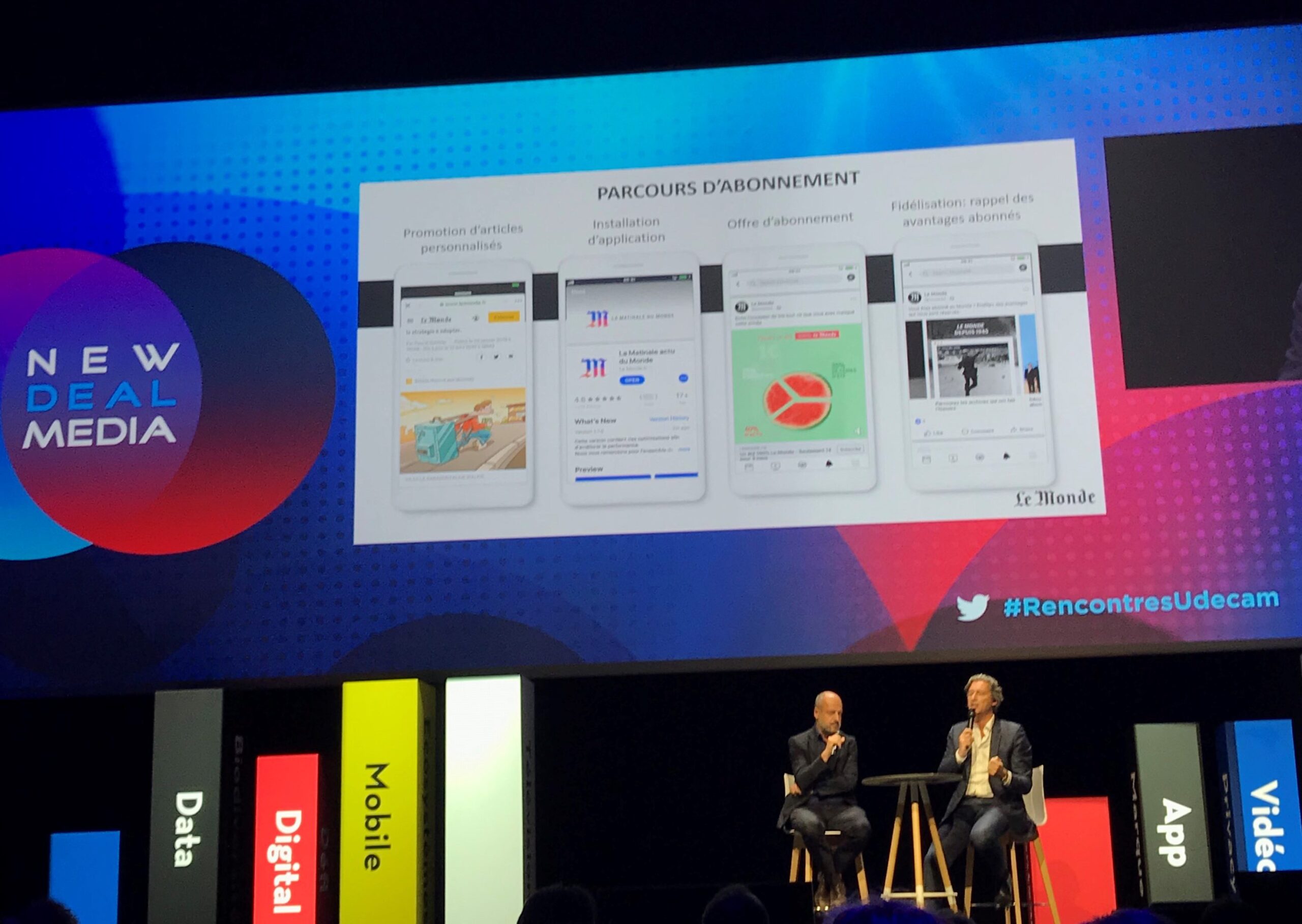 Louis Dreyfus (Le Monde) et Laurent Solly (Facebook) ont ensuite présenté les différents partenariats développés entre le quotidien et le réseau social. Outre leur partenariat en matière d’abonnements, Le Monde et Facebook collabore sur un outil de Fact checking. Le duo a aussi annoncé le lancement de « Plan B », une série vidéo créée spécifiquement pour Facebook Watch, centrée sur les enjeux environnementaux. Ces collaborations permettent de renforcer la qualité informative sur la plateforme, mais aussi d’améliorer le recrutement d’abonnés digitaux pour le journal. Tout le monde y gagne.
