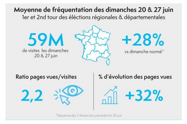 Élections régionales et départementales : une fréquentation en hausse sur les sites et applications d’actualités et d’informations générales