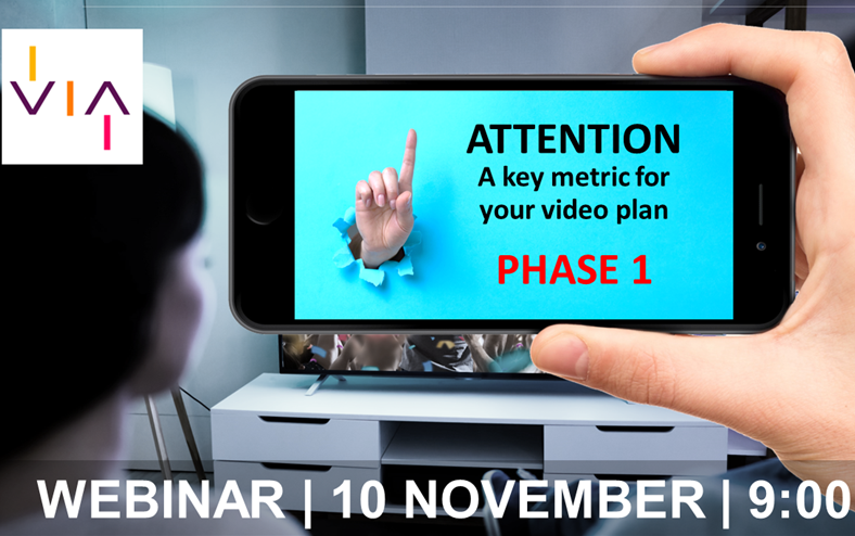 Le jeudi 10 novembre, à 9 heures, VIA présentera la première partie des résultats d’une étude sur ‘l’attention’ pour la publicité vidéo.