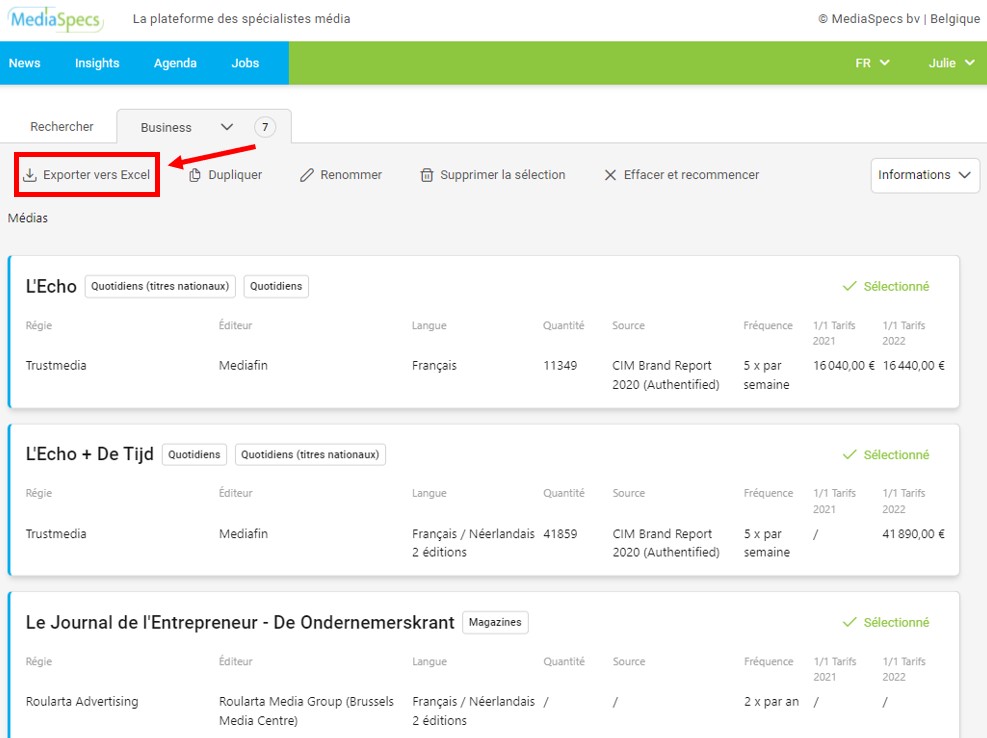 Vous voulez aussi pouvoir télécharger rapidement des infos média depuis la base de données ? Pour compiler rapidement votre campagne média ou votre liste de presse à l’aide d’un Excel MediaSpecs, nous vous expliquons ici comment procéder.