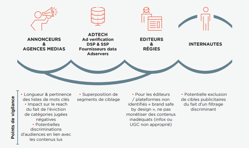 Face à la dispersion des campagnes digitales, les annonceurs et leurs agences doivent s’assurer que les contextes de diffusion sont appropriés aux marques et que leurs campagnes ne financent pas des contenus universellement jugés indésirables (contenus illégaux, pornographiques ou incitant à la haine par exemple). Si ces pratiques ne sont pas nouvelles, les outils et les technologies de filtrage utilisés se sont récemment multipliés et complexifiés, et leur gestion induit parfois des effets contre-productifs. Les marques, pour ne pas associer associer leurs campagnes à des contenus inappropriés, peuvent actionner ces filtres à différents niveaux de la chaine publicitaire, notamment sur la base de mots clés, appelés aussi blacklists ou blocklists. Mais leur emploi, parfois maladroit, redondant ou excessif, impacte directement les volumes d’inventaires publicitaires disponibles sur les sites et de la même manière, l’efficacité des campagnes.