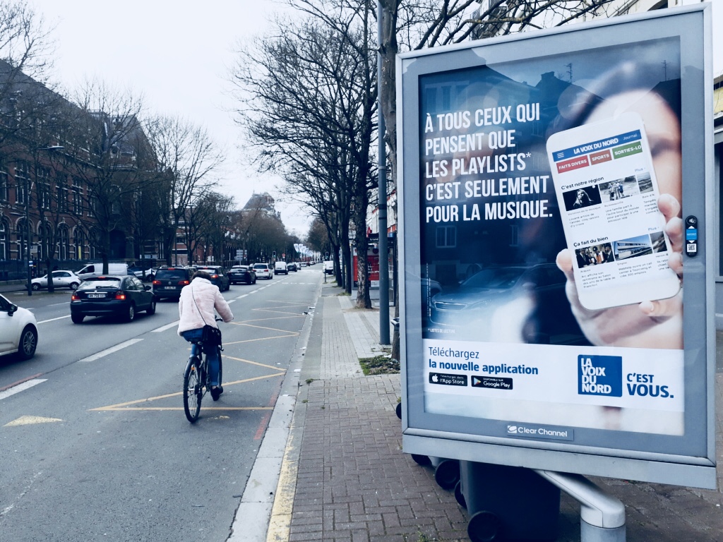 Pour faire connaître et expliquer ce système de «playlists», inédit dans le secteur de la presse, une campagne d’affichage intitulée «à tous ceux qui pensent que les playlists c’est uniquement pour la musique» a été mise en place. Une campagne vidéo et TV a pour objectif de valoriser le lien territorial qui réunit la rédaction et ses lecteurs. Elle cherche à susciter une émotion. S’abonner à La Voix du Nord, c’est un acte réfléchi pour accéder à de l’information de qualité, mais c’est aussi un acte symbolique, pour signifier son attachement à une région : ses habitants, ses paysages, ses valeurs.