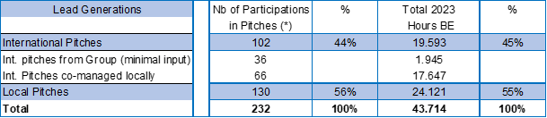 Si l’on additionne le nombre d’heures consacrées aux pitches par les neuf agences de l’UMA en 2023, on obtient 43.714 heures. Le plus grand nombre d’heures ont été prestées pour des pitches locaux.