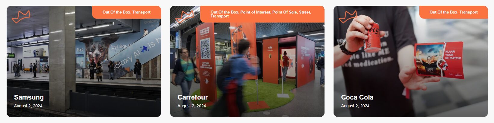 Le jury a évalué les dossiers introduits de manière stricte mais équitable, ce qui a donné lieu à neuf publications et à trois récompenses. Parmi les campagnes publiées, nous retrouvons plusieurs marques célèbres. C’est ainsi qu’à cette édition Adidas, Martini, Netflix, Lidl, BMW, Disney+, Be-Kind, Nestlé et Westtoer verront apparaître leur campagne sur le site du Best of OOH. Les trois « couronnes » ont été attribuées à Coca-Cola, Carrefour et Samsung.