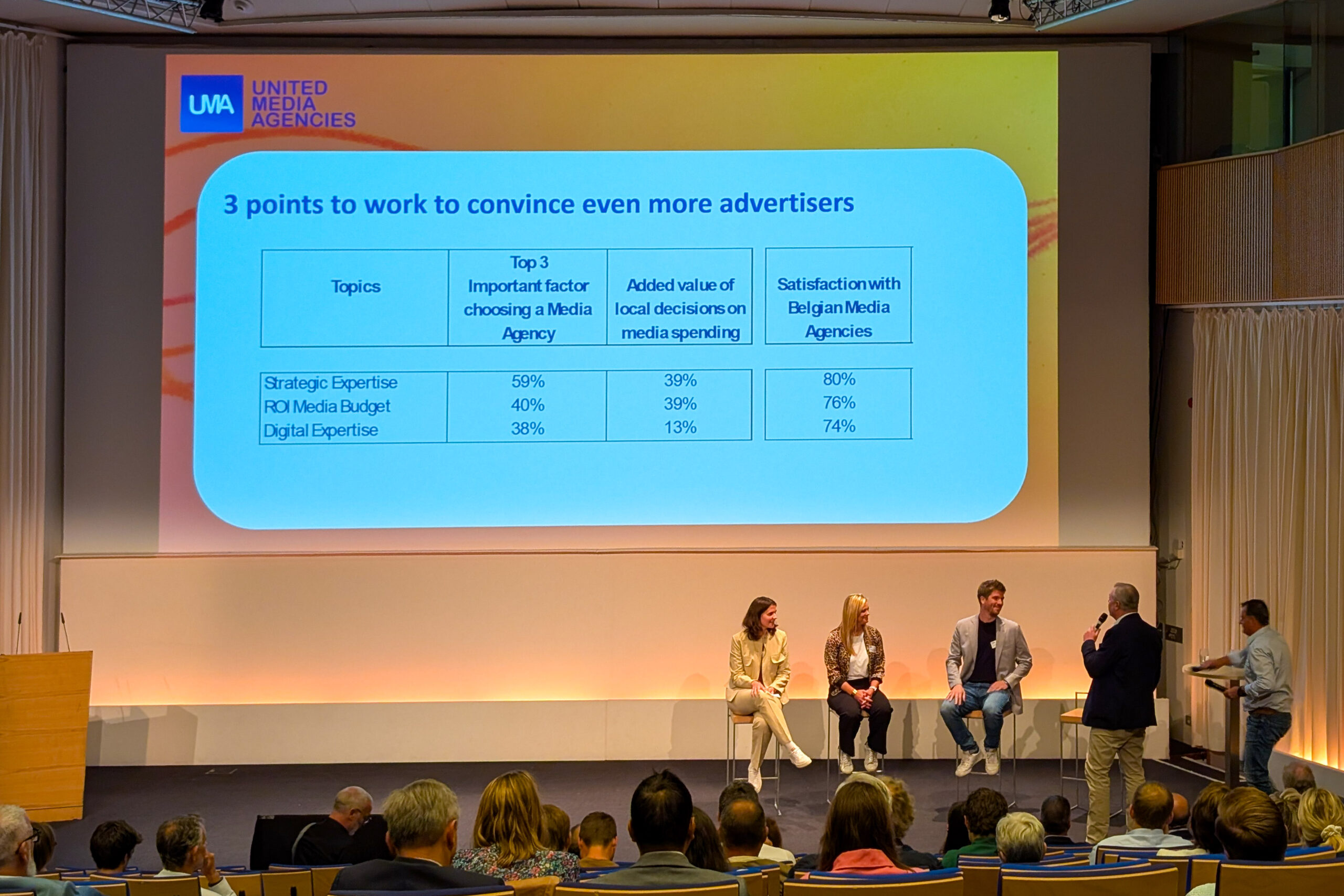 Après la présentation des résultats d’un sondage réalisé par Trustmedia sur la valeur ajoutée de l’expertise locale des agences média belges – qui montre un niveau de satisfaction élevé des annonceurs, entre 74 et 80 % selon les critères – François Chaudoir a réuni sur scène un panel composé de Suzanne Stroobants (WPP Media), Laurent Massart (Dentsu Benelux) et Margaux Marien (Omnicom Media Group) pour discuter des critères déterminants dans le choix d’une agence. Chaque intervenant a été invité à commenter un des trois critères prioritaires identifiés par les annonceurs : Strategy Expertise, ROI + Media Budget et Digital Expertise.