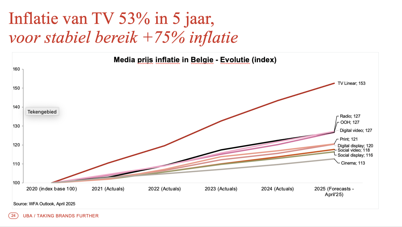 La portée télévisuelle classique diminue chaque année, tandis que la portée digitale des médias locaux reste insuffisante pour compenser cette baisse. Cela rend la VRT indispensable dans un écosystème performant et compétitif. Par ailleurs, le coût de la publicité télévisée a augmenté de 53 % en Belgique au cours des cinq dernières années, alors que la portée a chuté. Pour les annonceurs, cela équivaut à une hausse des coûts allant jusqu’à 75 % pour un même niveau de portée (source : WFA). Une utilisation efficiente des plateformes publiques est donc essentielle pour maintenir une visibilité locale suffisante à la télévision.