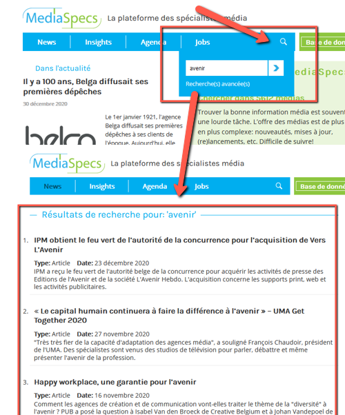 Saviez-vous que vous pouvez rechercher par mots-clés une actualité spécifique ? Pour ce faire, il suffit de vous rendre sur notre page d’accueil et de cliquer sur la petite loupe. Encodez un mot clé et lancez la recherche. Vous obtiendrez tous les résultats de recherche relatifs à votre mot clé. Une fonctionnalité idéale pour (re-)découvrir les actualités qui ont marqué 2020.