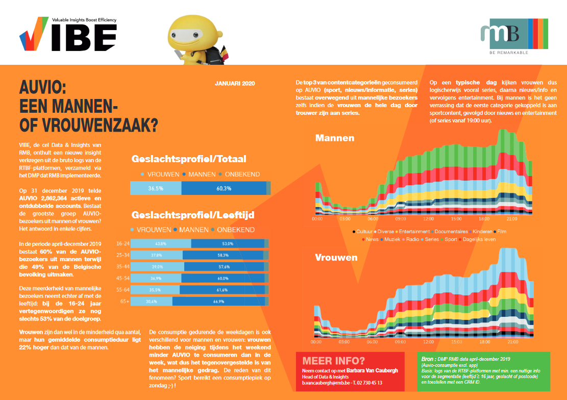 VIBE, de cel Data & Insights van RMB, laat het DMP van de RTBF opnieuw aan het woord en analyseert het profiel van de Auvio-gebruikers.