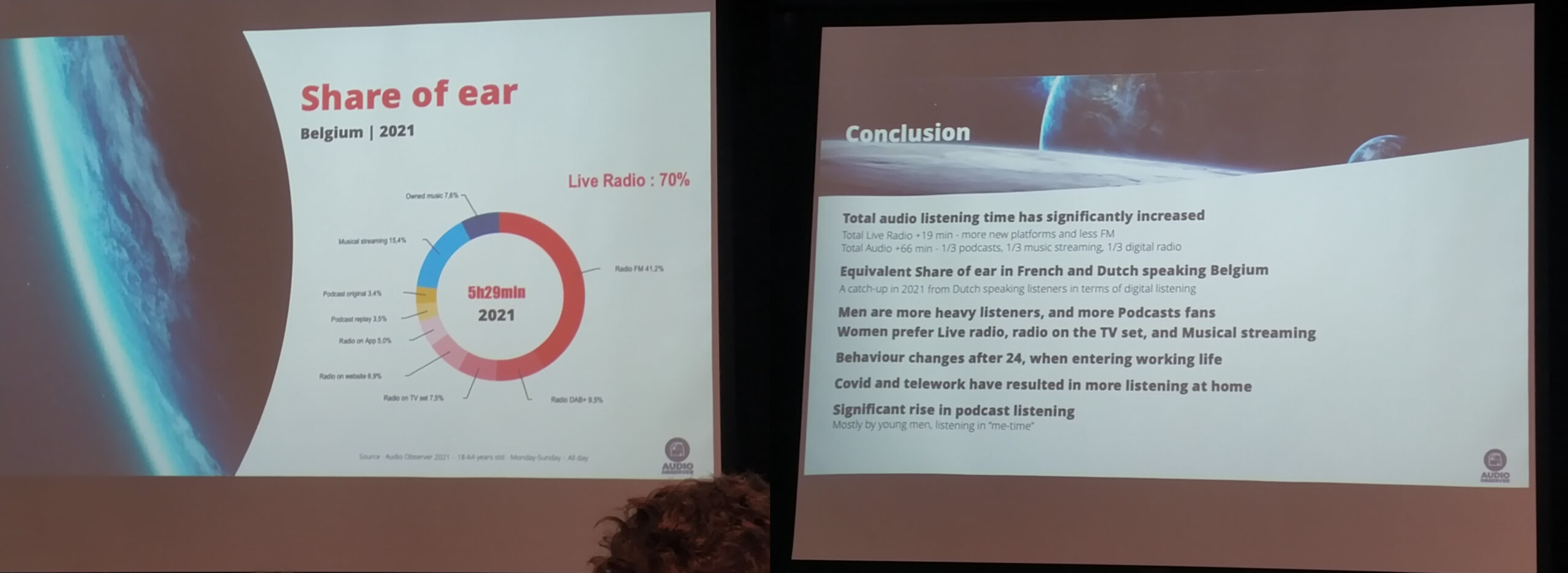 - Het luisterverschil tussen Noord en Zuid bestaat niet meer. In 2017 luisterde Vlaanderen meer naar audio en Wallonië meer digitale audio. Vanaf 2018 vertonen de “twee gewesten gelijkaardig gedrag op vlak van audioconsumptie“.