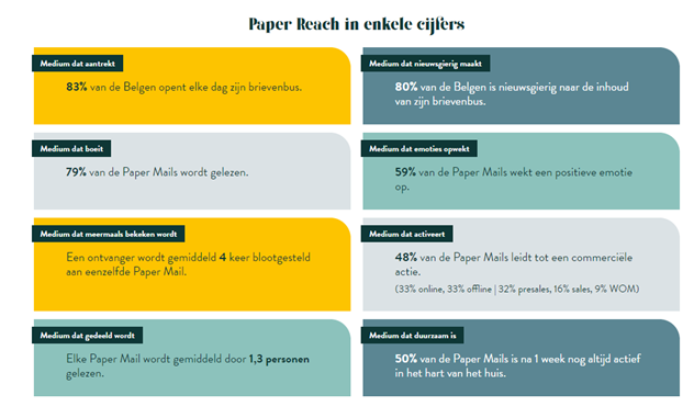 Andere studies toonden al aan dat deze tastbare communicatie op papier, de Belgische consumenten ademruimte geeft en veraf staat van de koortsachtige gejaagdheid van de digitale wereld. Dankzij dit medium kunnen de consumenten in alle rust, in alle openheid en op een respectvolle manier kennis nemen van de reclameboodschap. Het is ook de ideale manier om een duurzame relatie met uw klanten op te bouwen. Volgens de Paper Reach-studie wordt immers 79% van de verzonden Paper Mails ook effectief gelezen door de bestemmeling. Dat is een mooi begin, maar het is nog lang niet alles.