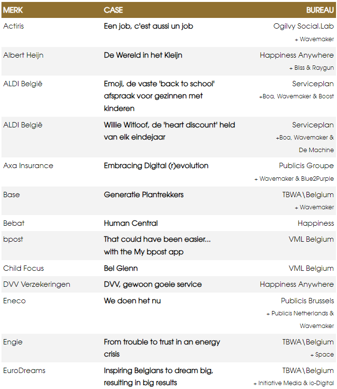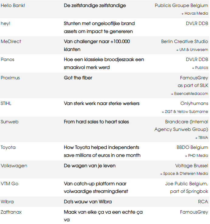 Effie Belgium maakte na zijn traditionele jurydag de 25 cases bekend die dit jaar kans maken op een felbegeerde Bronze, Silver of Gold Effie.
