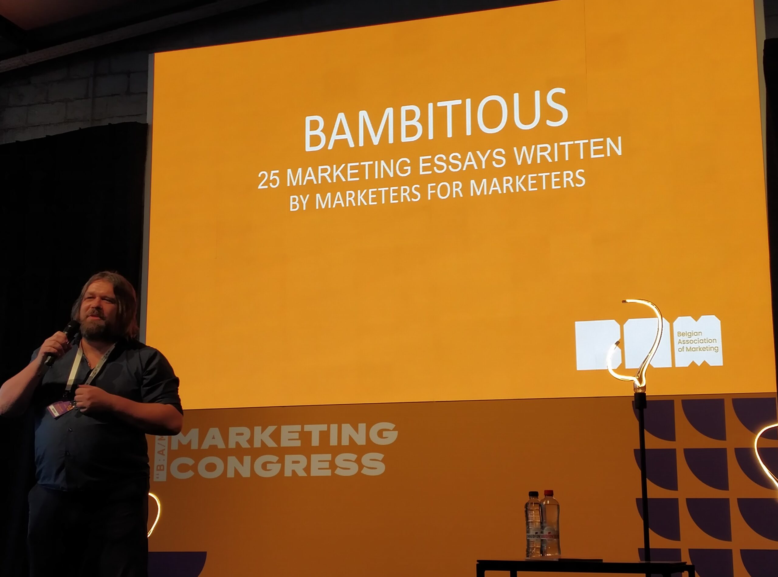 BAMBITIOUS. 25 marketing essays written by marketers for marketers. “This book is a prototype”, zegt Claus Raasted (Director – The College of Extraordinary Experiences), die de taak op zich nam om een collectie van essays samen te stellen, “a first-of-its-kind test to see if an idea has merit or not”. Claus Raasted wou bekijken hoe hij dit jaar kon bijdragen aan het congres, dus zeiden Alex Thoré en Jean-Baptiste De Bock: “Can you do something that gives us money without taking our time?”.