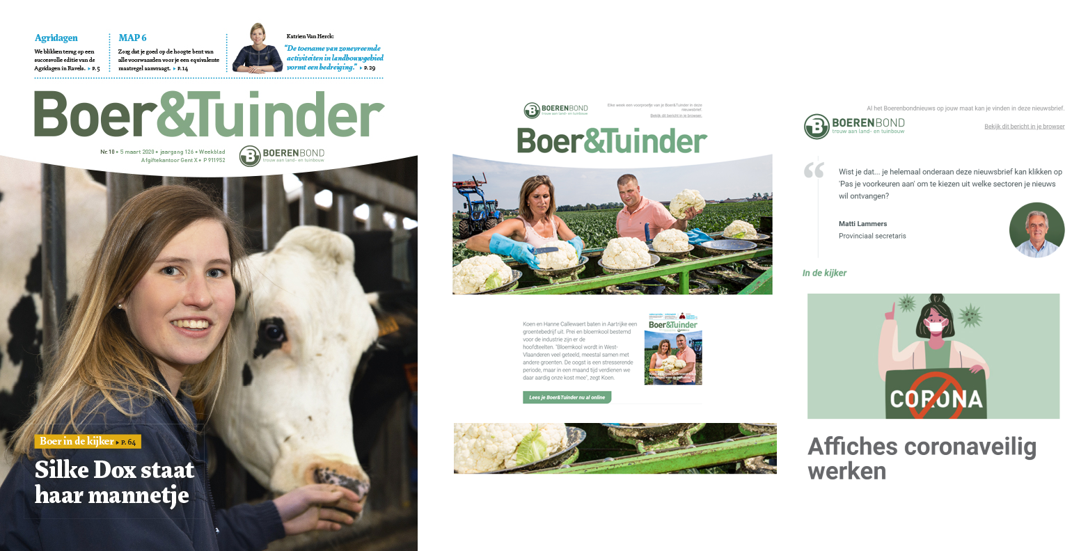 V.l.n.r.: cover magazine Boer&Tuinder en wekelijkse newsletter
