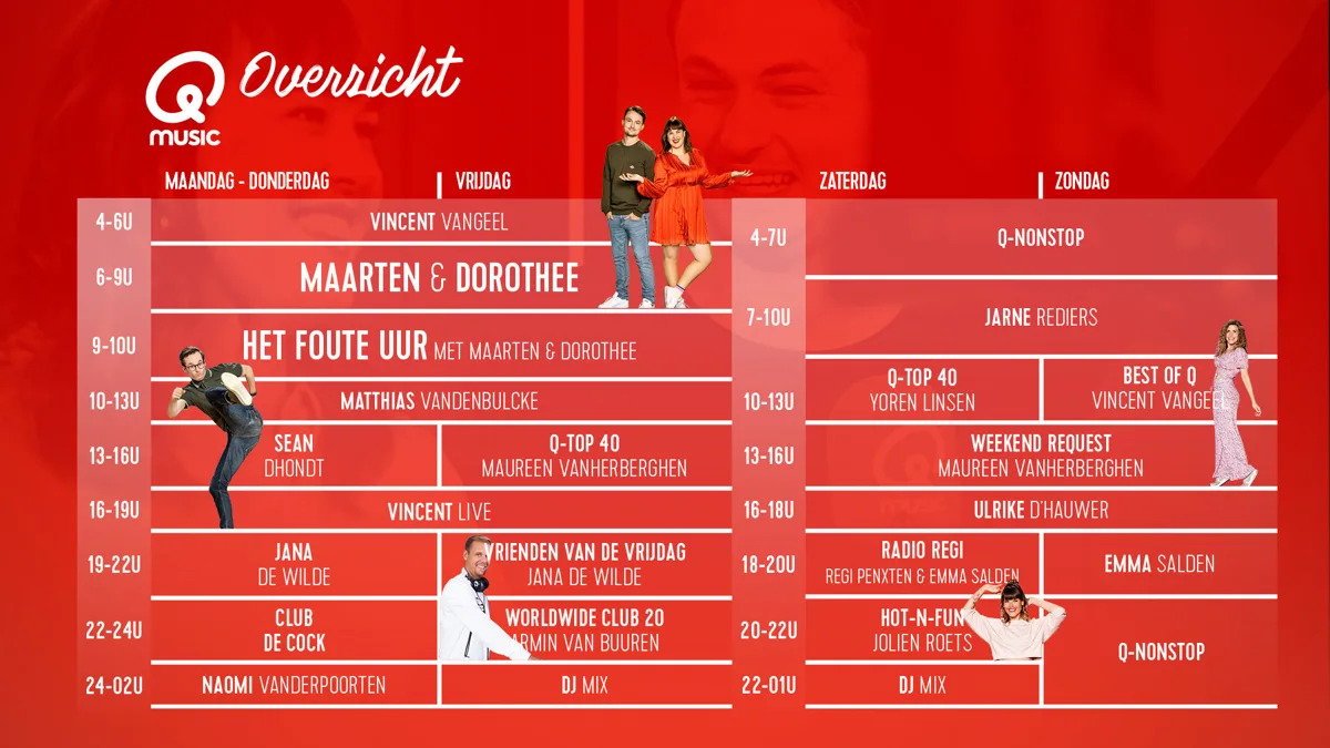 Qmusic trapt het najaar op gang. Dat doet de radiozender van DPG Media niet alleen met haar vertrouwde stemmen en vaste waarden, maar ook met nieuwe namen en programma’s. Zo versterken Tom De Cock, Armin van Buuren en Regi Penxten de programmatie.