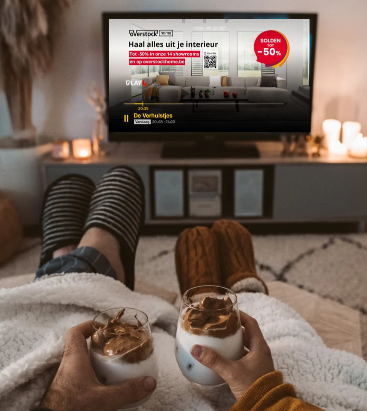 Met één druk op de pauzeknop is het dankzij de technologie van Telenet mogelijk om het tv-scherm om te toveren tot een indoor billboard op Play4, Play5, Play6, Play7 en Play Sports Open.