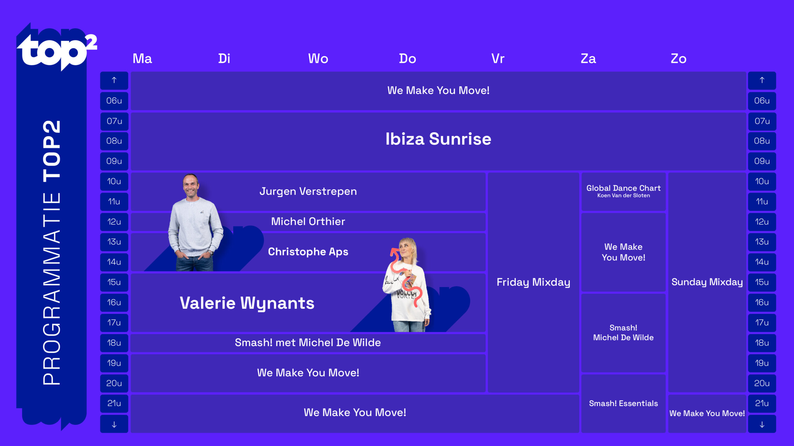 Ook in het najaar is TOP2 er opnieuw voor de luisteraars met een kloppend hart voor elektronische muziek. Opstaan kan met TOPibiza Sunrise, de ideale vibe om een nieuwe dag te starten.