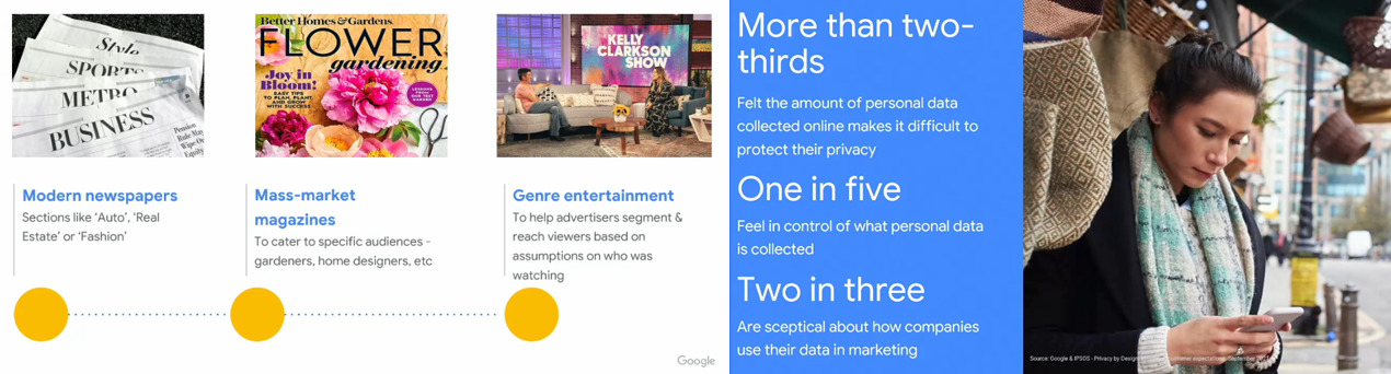 « Nous voulons qu’Internet reste accessible et abordable pour tous », déclare Matt Brittin (Google). « La publicité joue un rôle essentiel à cet égard », poursuit-il, car ce sont souvent les recettes publicitaires qui rendent les médias accessibles à un large public. La publicité a longtemps financé nos médias, et Google s’est appuyé sur cette tradition. La publicité peut être vue comme une forme de tir à l’arc : on ne peut viser avec ses flèches que si une cible peut être identifiée. Il s’agit d’une donnée déterminante et essentielle dans le ciblage contextuel, le ciblage par intérêt et le ciblage par audience.