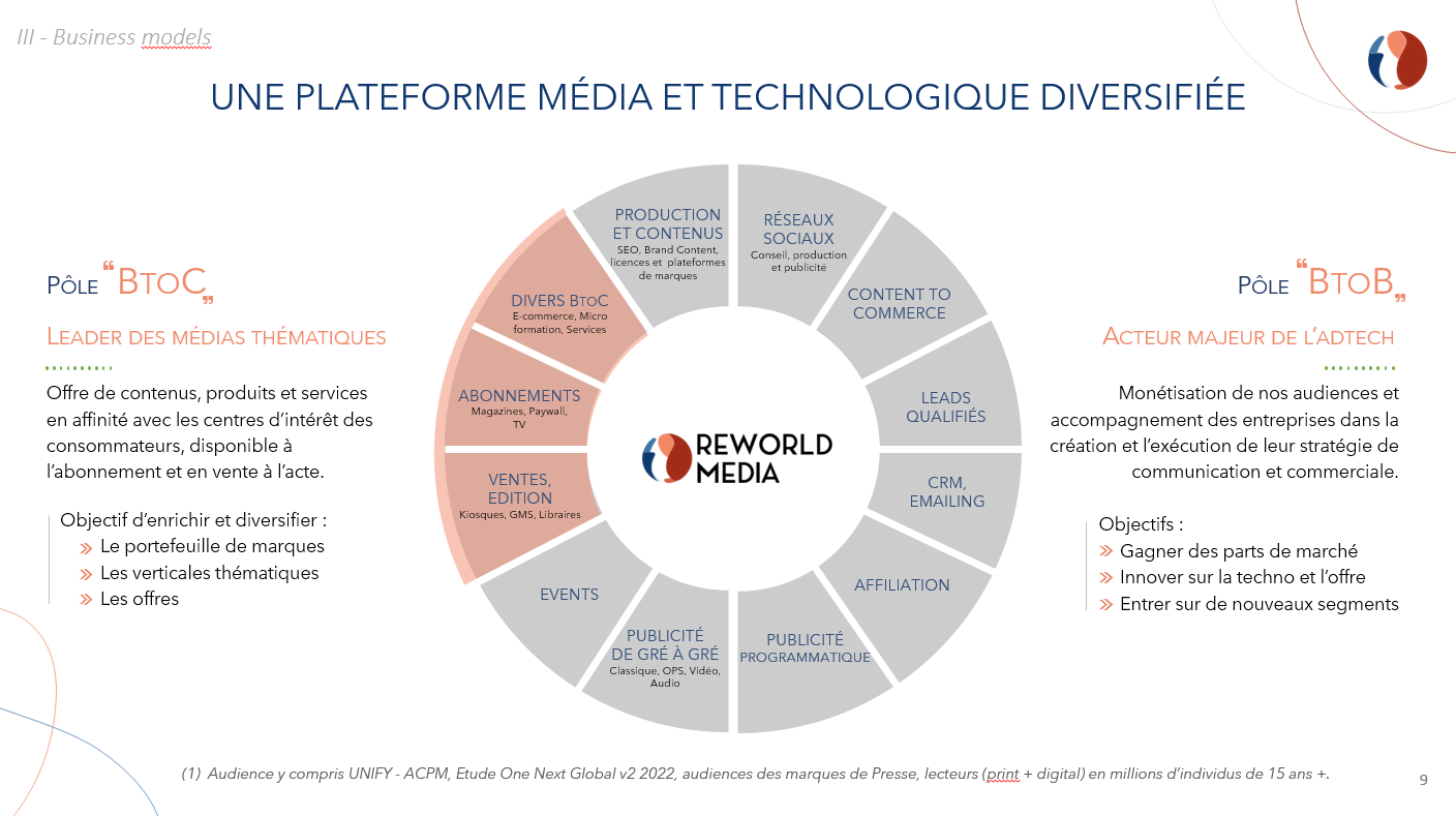 C’est là un autre point fort de l’entreprise : la diversification – des contenus, mais aussi des sources de revenus. Cette année, Reworld organise par exemple une centaine d’événements, un nouveau secteur qui s’inscrit dans l’ambition de l’entreprise d’investir dans plus de hors média après 3 ans de covid-19. La régie du groupe établit également des offres sur mesure pour les différents types d’annonceurs, et ça fonctionne : « Les annonceurs viennent chez nous en disant : ‘L’exposition est plus faible mais la conversion est meilleure.’ »