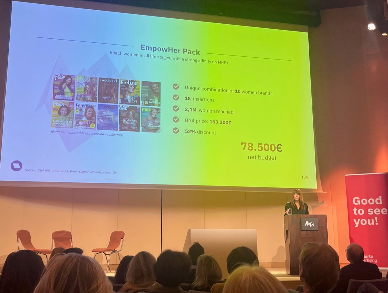 Enfin, Mireille De Braekeleer a présenté le nouveau pack EmpowHer. Cette solution publicitaire est conçue pour atteindre efficacement les publics féminins, avec un mélange de 10 marques axées sur les femmes. Elle permet aux annonceurs d’entrer en contact avec des femmes à tous les stades de leur vie, y compris avec la tranche d’âge influente des 35-54 ans.