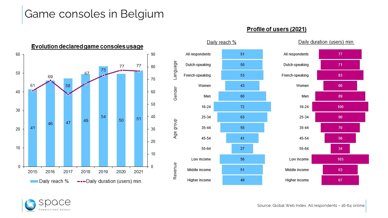 L’information a été publiée cette semaine : le marché du jeu vidéo pèserait en Belgique quelque 600 millions d’euros en 2021. Une progression modeste après une année 2020 dopée par le confinement. Dans le même temps, selon le Global Web Index (GWI), 2021 a plutôt constitué une année de stabilisation pour le gaming sur support physique.