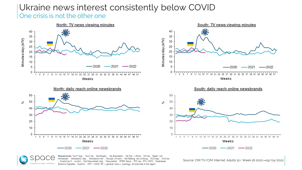 Il est probable que le Covid-19 a tué nettement moins de gens que l’invasion russe de l’Ukraine, mais quand on compare l’engouement pour l’information en 2020 au temps du Covid et celle qui prévaut depuis le 24 février dernier, jour du déclenchement de « l’opération militaire spéciale », on est clairement dans une autre dimension. Le Covid était à nos portes, l’Ukraine c’est plus loin. Comment arrive-t-on à ce diagnostic de moindre intérêt ?