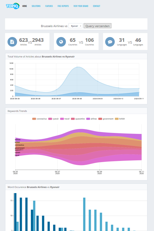 Topiq, le nouvel outil de suivi de l’actualité, voit beaucoup d’émotion dans la couverture de Brussels Airlines, TUI fly et Ryanair