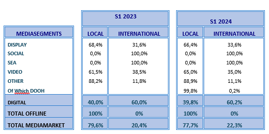 • La répartition de la publicité digitale entre acteurs locaux et internationaux (Google, Amazon, Meta, Microsoft, X, TikTok, etc.) se maintient autour d’un ratio de 40 et 60% respectivement.