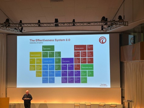 Pour soutenir cette approche, un Effectiveness System a été développé il y a quatre ans en Suède : une norme industrielle regroupant 36 KPI en six catégories : digital metrics, relationship metrics, brand metrics, business metrics, campaign metrics et media investments. Le système combine des mesures quantitatives (comme le reach et le chiffre d’affaires) et des insights qualitatifs (comme l’attitude envers la marque et l’engagement émotionnel). L’objectif est clair : fournir un langage commun et des directives précises pour mesurer et rapporter la valeur et l’impact du marketing.