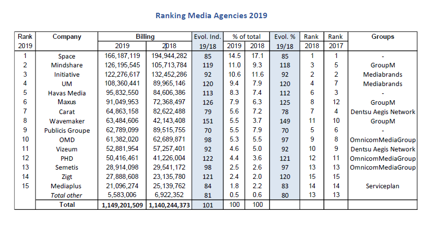 UMA Ranking 2019: Space reste la plus grande agence média, GroupM renforce sa position, Wavemaker enregistre la plus forte hausse
