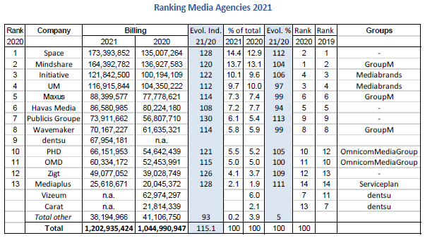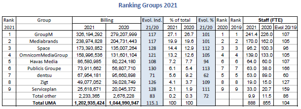 UMA Ranking 2021 : GroupM et Space en tête du classement