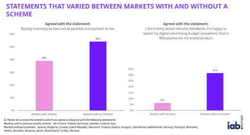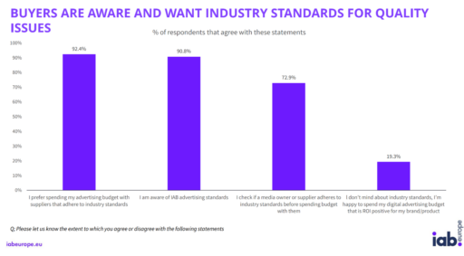 L’IAB Europe a interrogé 119 agences et marques quant à l’importance des normes de qualité des médias. Une distinction a été établie entre les pays qui disposent d’un cadre et de normes pour définir et évaluer la qualité et les pays qui en sont dépourvus. Le label DAT, qui existe en Belgique, en France et en Suisse, en est un exemple.