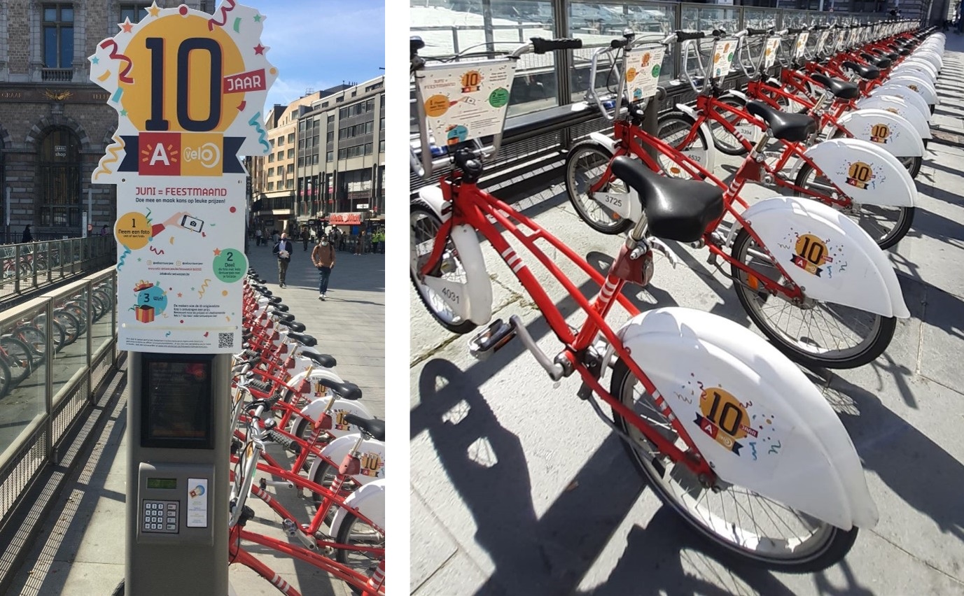 Velo Antwerpen, les fameux vélos rouges en libre-service de Clear Channel, célèbre ce mercredi ses 10 ans d’existence avec un programme festif. Avec 4.200 vélos et 305 stations, Velo est devenu un incontournable dans le paysage anversois.