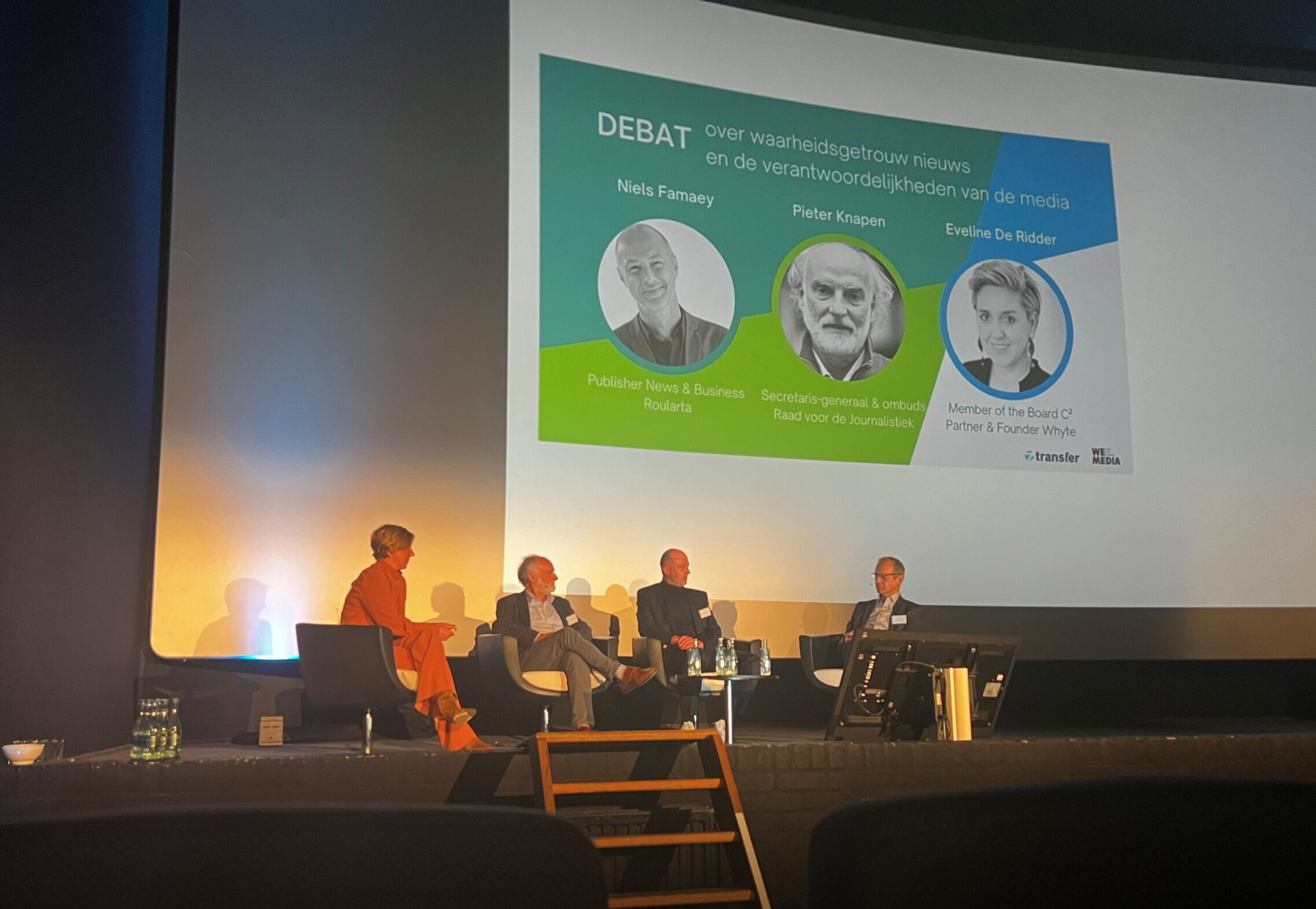 Eveline De Ridder (Whyte Corporate Affairs), modératrice de service pour le deuxième débat de l’événement Media & Communities de MediaSpecs, reprend la question de clôture de la conférence du professeur Bart Pattyn qui vient de se terminer. « Avons-nous le sentiment que les médias créent actuellement un cadre permettant d’informer de manière suffisamment véridique ? »