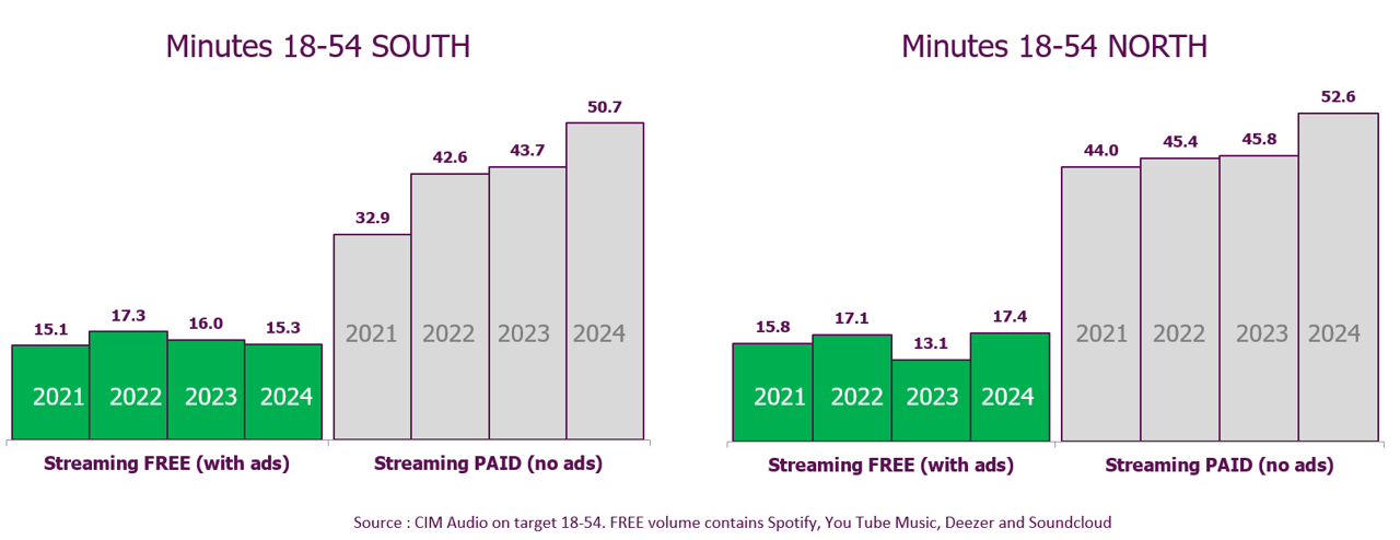 - NORD : 24,9% des minutes consommées sur les plateformes de streaming sont gratuites et disponibles pour la publicité